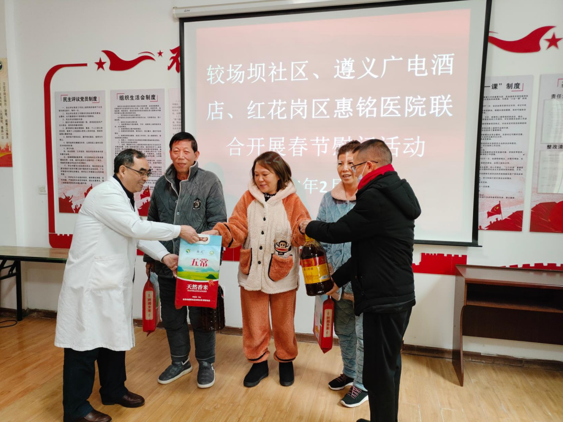 情暖初春,爱在惠铭:新春慰问暖人心 当时光的车轮碾过岁末的轨迹,老街巷里的年味儿便在不知不觉中悄然弥漫。在这个充满期盼与团聚的节点,较场坝社区联合遵义广电酒店、红花岗区惠铭医院,共同发起了一场以“情暖社区,迎春送福”为主题的春节走访慰问公益活动,将最温润的关怀送进千家万户。